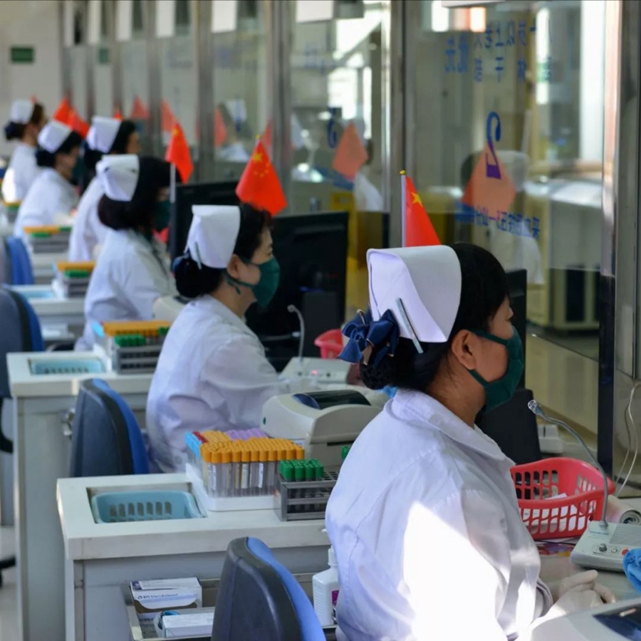 10月2日,遼寧沈陽。采血中心的護士們國慶期間依然堅守崗位。作者:董志光