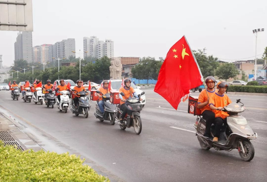 7月15日,山西臨汾。外賣小哥正在送餐。作者:秋天的楓葉