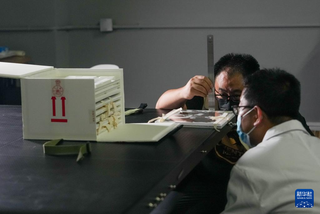 9月11日,工作人员在湖南省博物馆文物库房内准备对长沙子弹库战国帛书进行标准化影像采集。