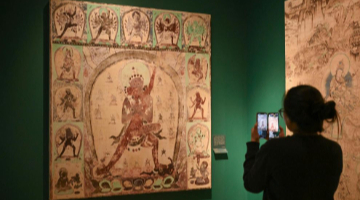 10月30日,游客在西藏博物馆“祥开万象——故宫与西藏文物联展”上参观。