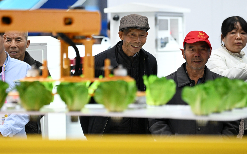 2025年10月25日,参观者在杨凌农高会上参观“无人化植物工厂成套技术装备创制及应用”项目成果。新华社记者 李一博 摄