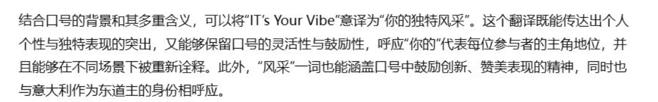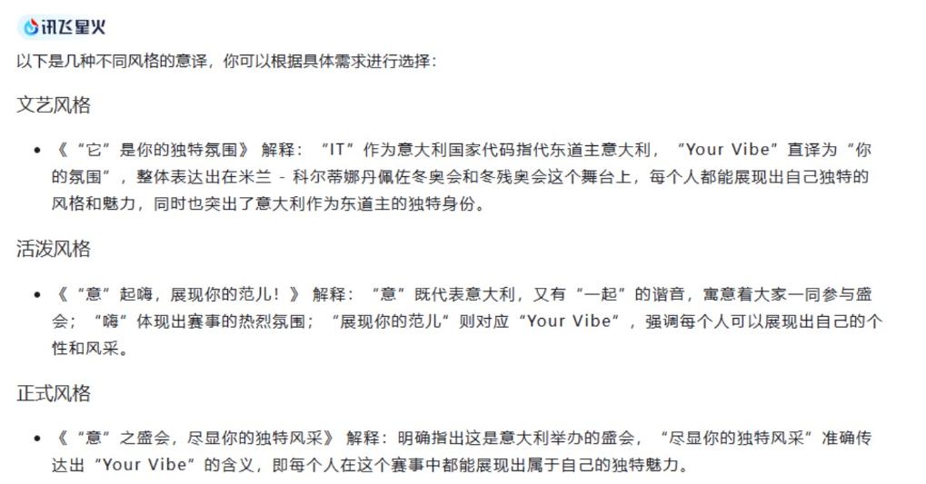 讯飞星火版本:1.“它”是你的独特氛围。2.“意”起嗨,展现你的范儿!3.“意”之盛会,尽显你的独特风采。
