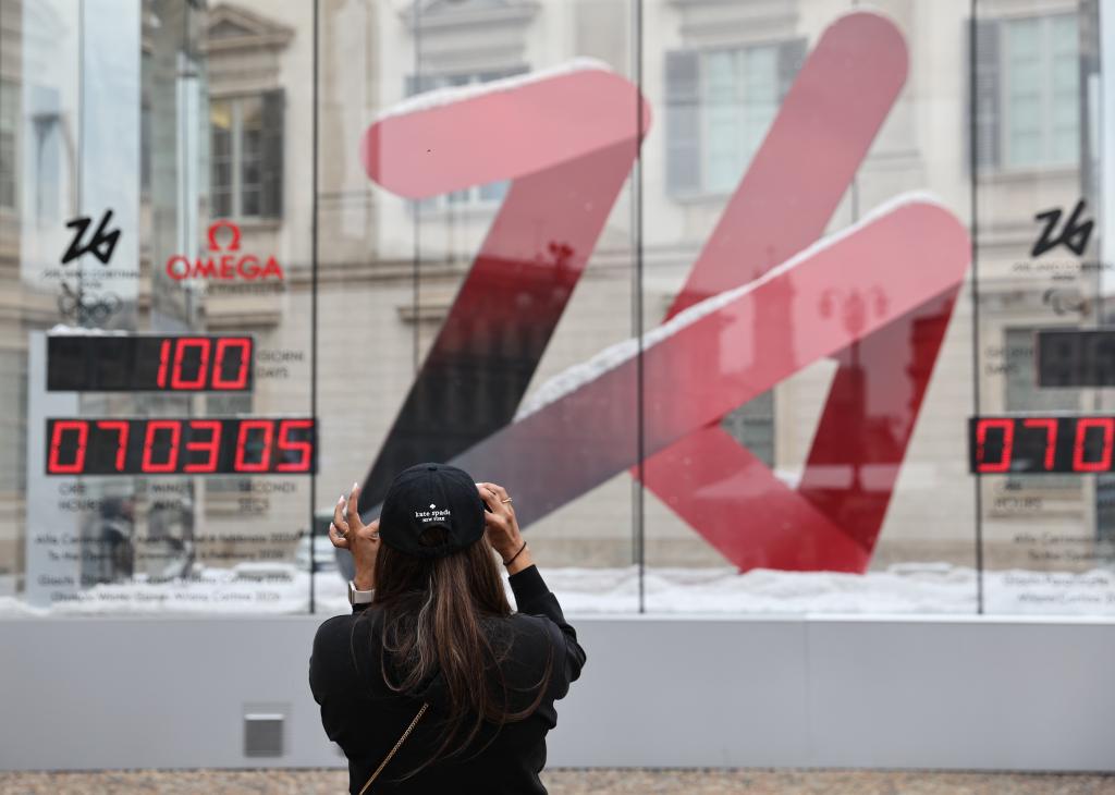 10月29日,在意大利米兰,市民拍摄米兰-科尔蒂纳冬奥会倒计时牌。新华社记者 李京 摄
