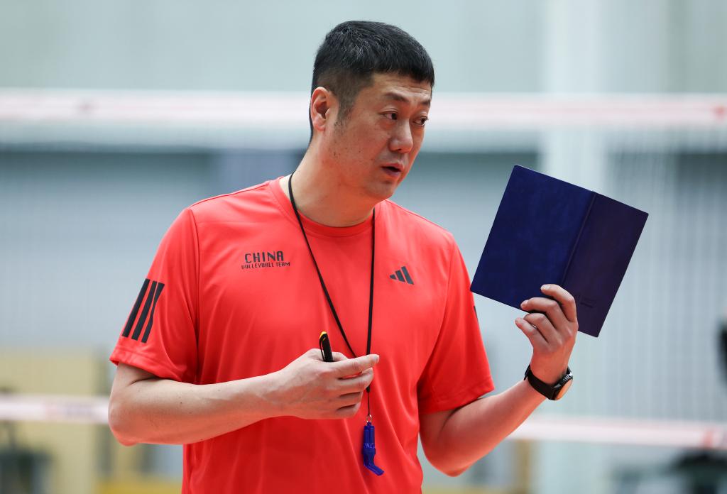 4月28日,中国女排主教练赵勇在公开训练课上。新华社记者 韩岩 摄