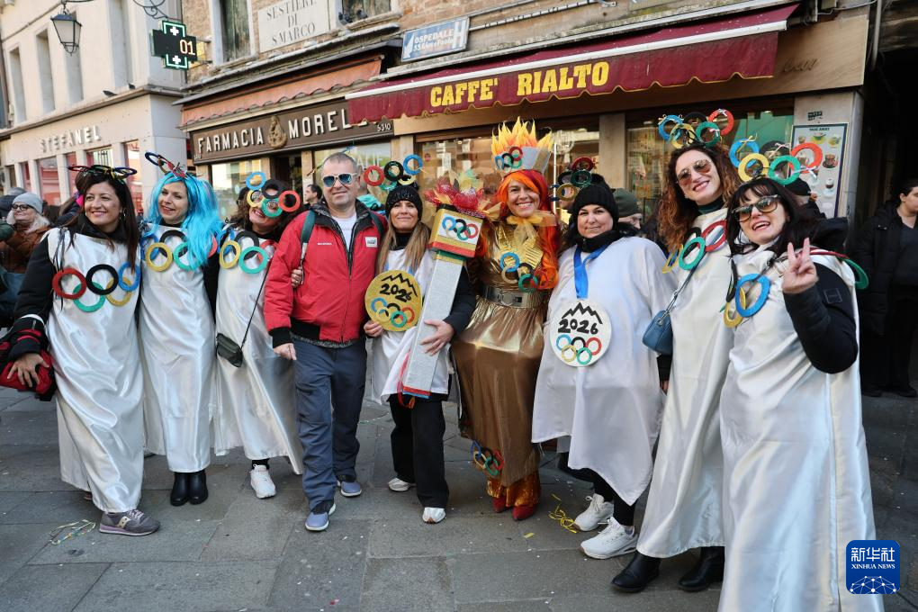 2026年米兰-科尔蒂纳冬奥会即将于2月6日开幕。在意大利威尼斯举办的狂欢节上,许多参与者在装扮中加入奥运元素,热情迎接体育盛会的到来。