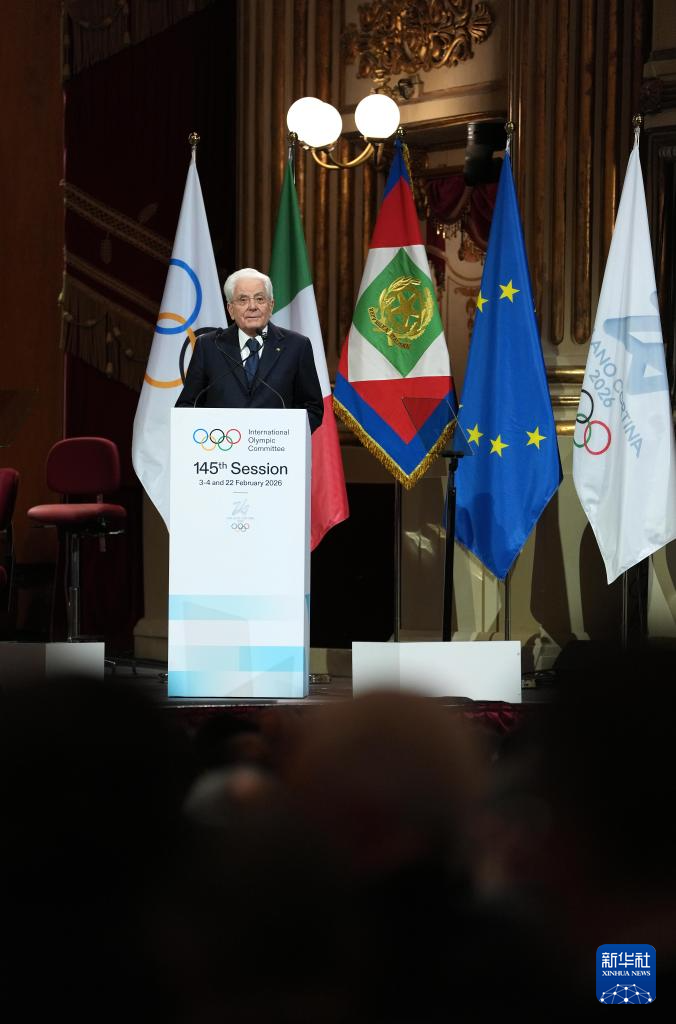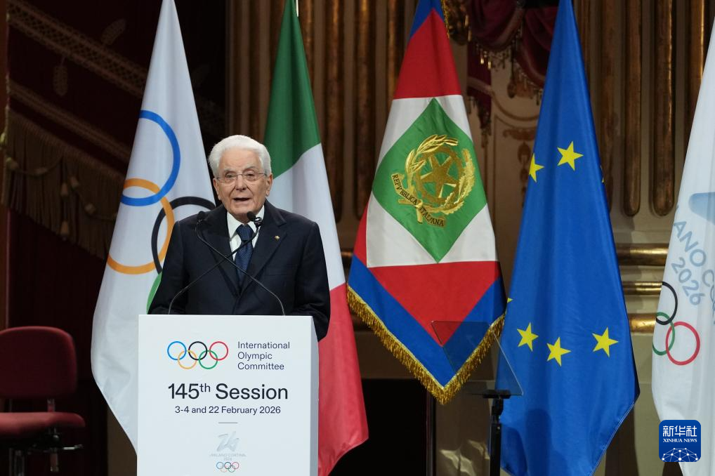 2月2日,意大利总统马塔雷拉在开幕式上发言。