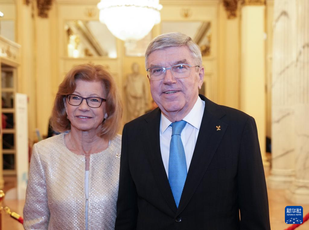 2月2日,国际奥委会终身名誉主席巴赫(右)及夫人克劳迪娅·巴赫抵达开幕式现场。