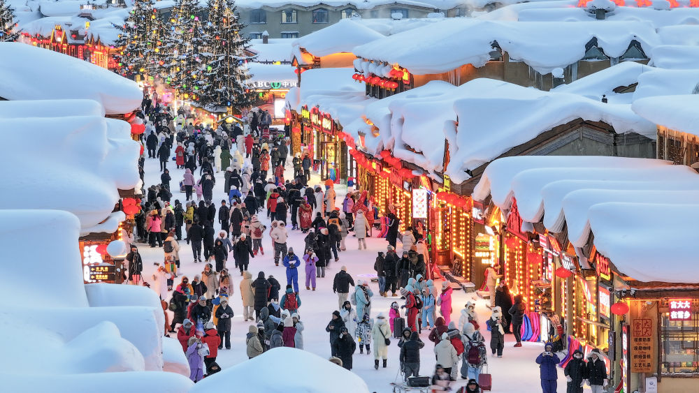 2026年1月17日,游客在“中国雪乡”景区游玩(无人机照片)。