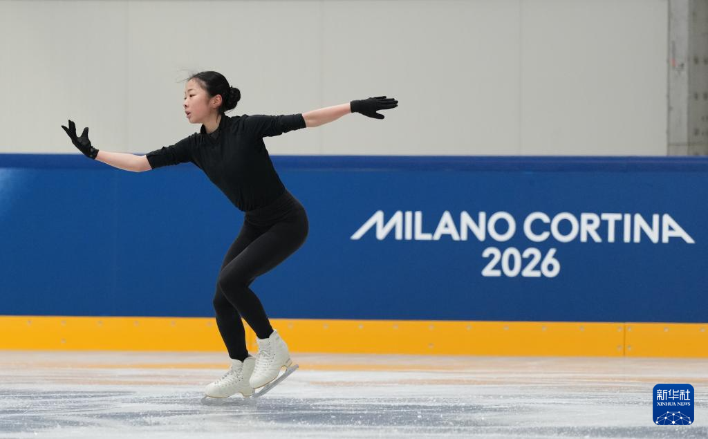 当地时间2月3日,中国花样滑冰运动员在米兰滑冰馆进行适应性训练,备战即将开幕的米兰冬奥会。