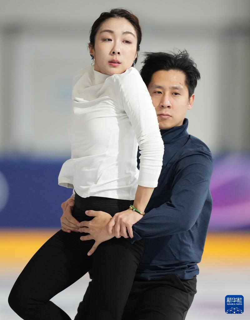 2月3日,中国花样滑冰选手隋文静(右)、韩聪在训练中。