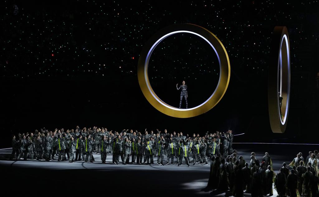 摒弃阻隔、拥抱彼此。全场瞩目中,奥运五环逐渐被拼凑完整——唯有承认并超越差异,才能抵达真正的团结。
