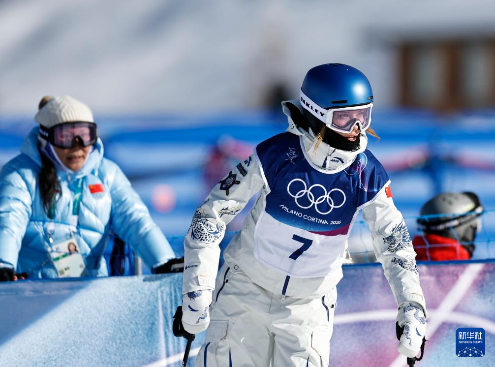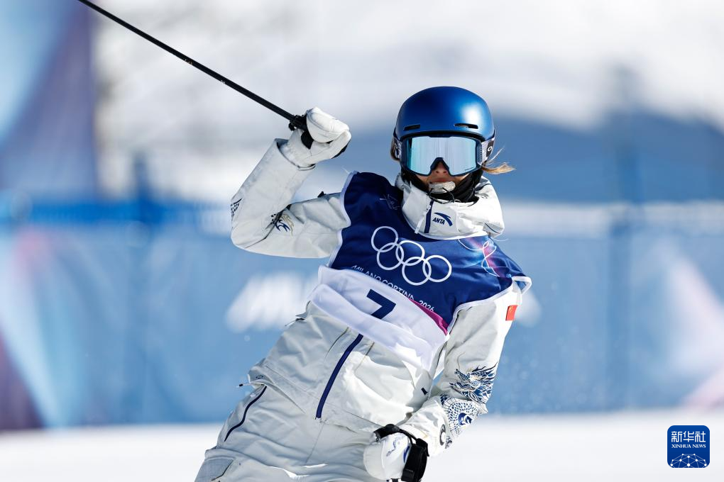 当地时间2月7日,在意大利利维尼奥举行的米兰-科尔蒂纳冬奥会自由式滑雪女子坡面障碍技巧资格赛中,中国选手谷爱凌、刘梦婷、杨如意和韩林杉迎来本届赛事首秀。