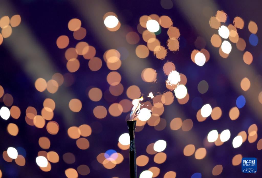 这是2月6日在开幕式现场传递的冬奥火炬。