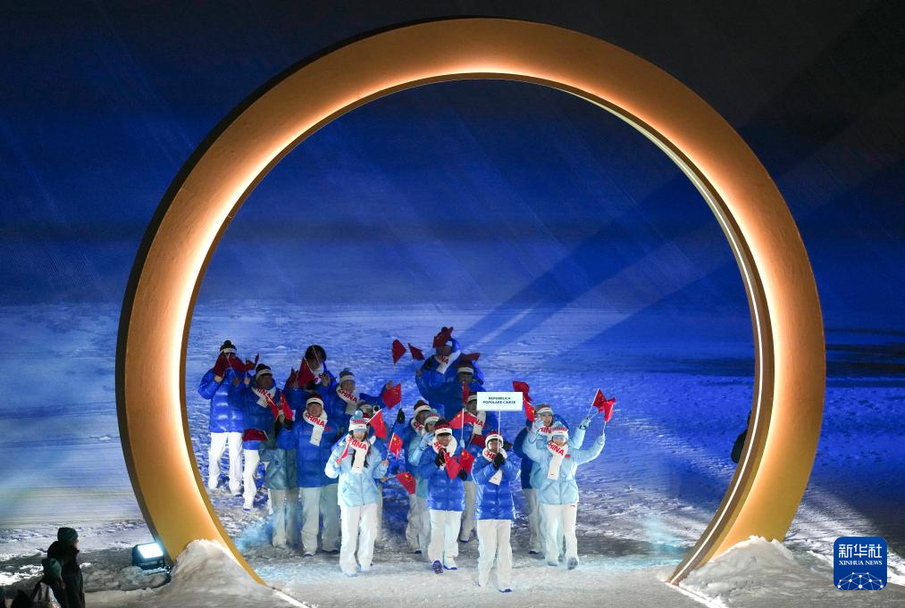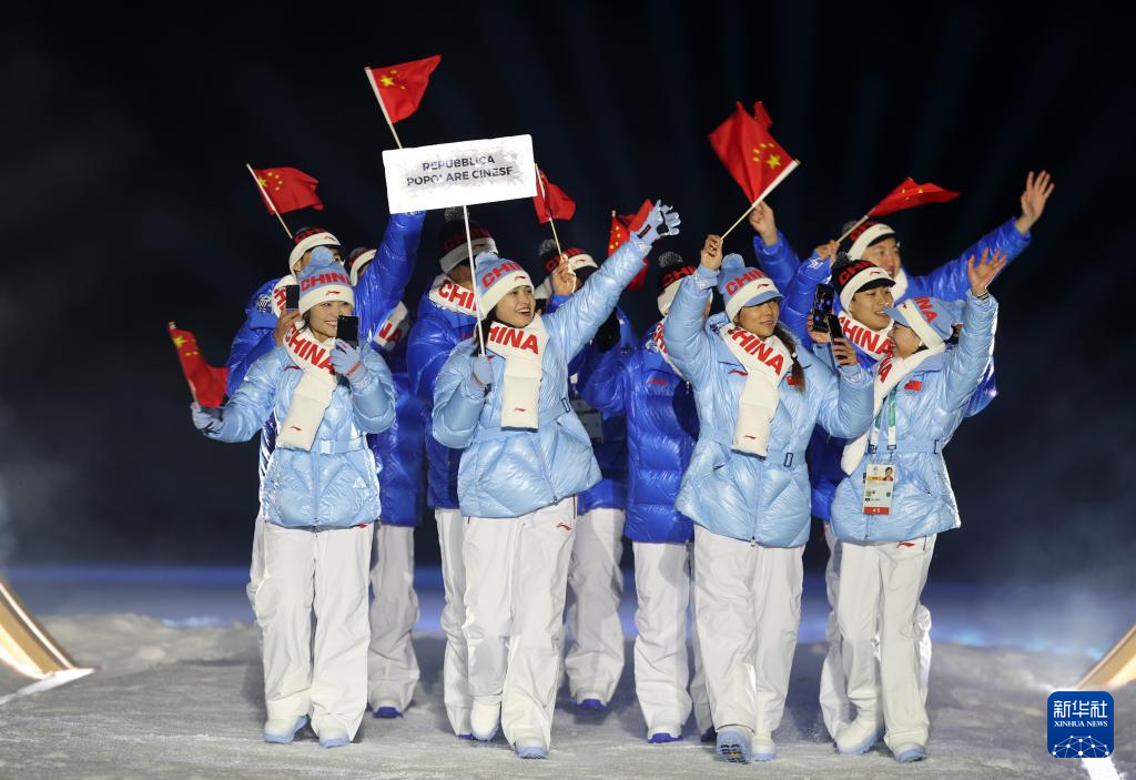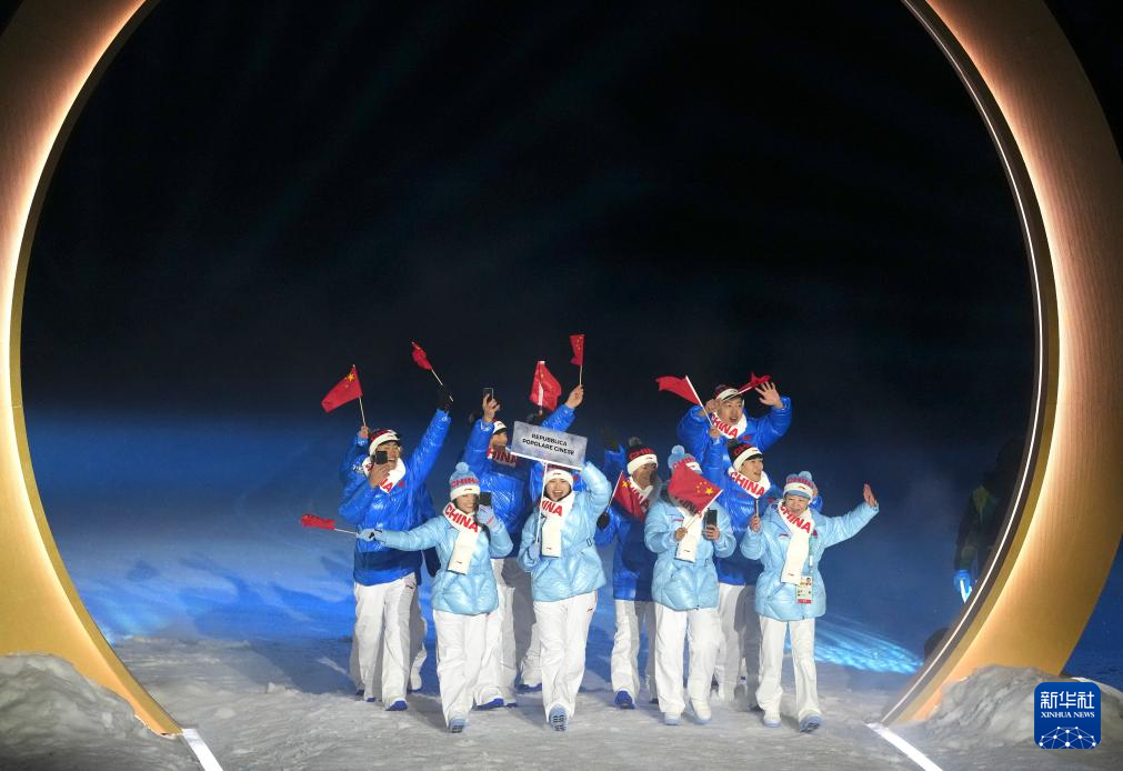 2月6日,中国体育代表团在利维尼奥参加入场仪式。
