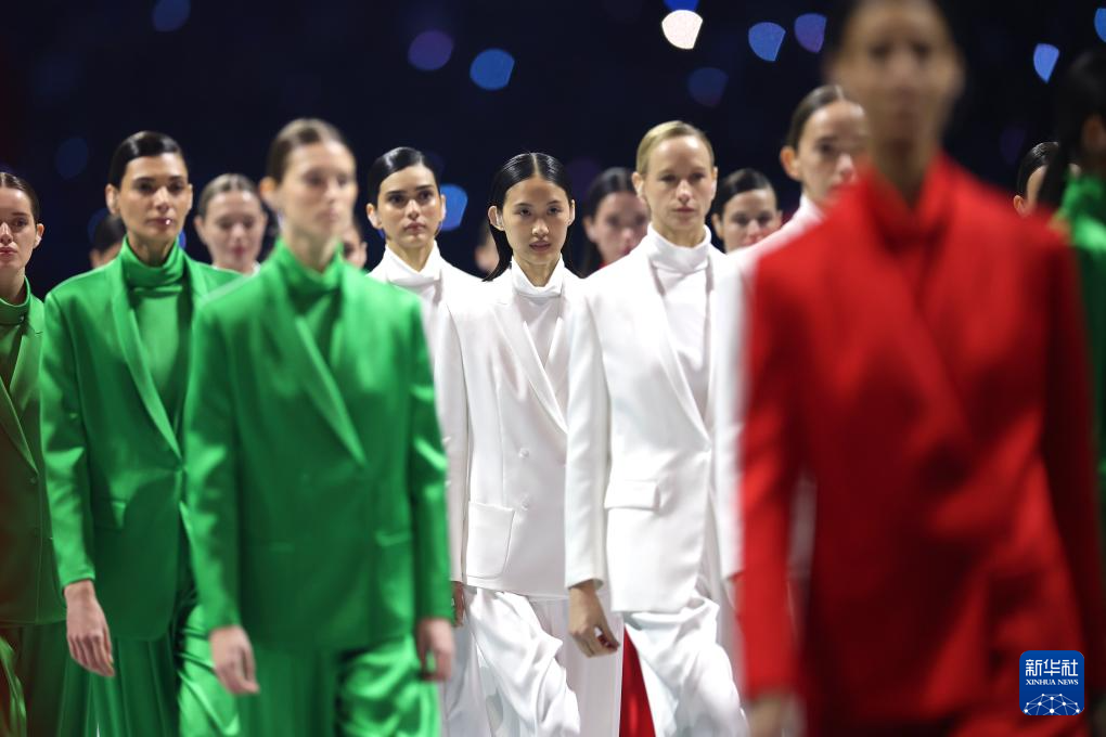 2月6日,模特身着代表意大利国旗颜色的服装入场。