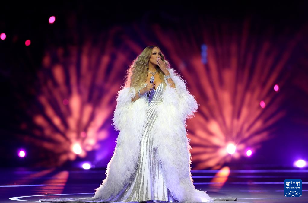 2月6日,歌手玛丽亚·凯莉在开幕式现场表演。