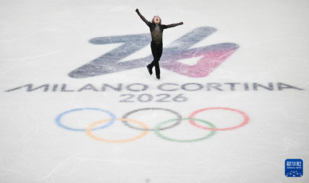 2月8日,意大利队选手里佐在团体赛男单自由滑完赛中。