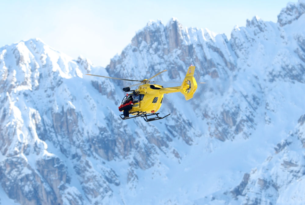 2月8日,直升机将受伤的沃恩接走。新华社记者 费茂华 摄