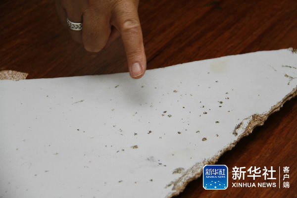 ↑這張3月3日拍攝的資料照片顯示的是,在莫桑比克首都馬普托,莫桑比克民航管理局局長若昂·德阿布雷烏在新聞發(fā)布會上向記者展示飛機殘片上密集的凹凸點。新華社記者 李曉鵬 攝